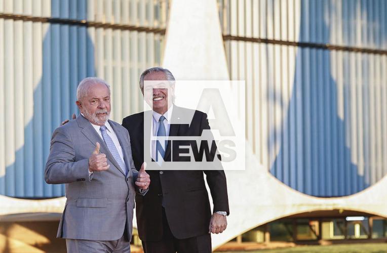 Brasilia, Brasil.- En las fotos tomadas el 2 de mayo del 2023, el presidente de Brasil, Luiz Inácio Lula da Silva (izquierda) recibió al mandatario de Argentina, Alberto Fernández (derecha) en el Palacio de la Alvorada, Brasilia, como parte de la agenda bilateral que ambos países sostienen. Argentina y Brasil se encaminan a negociar un acuerdo bilateral para aliviar la utilización de dólares de las reservas del Banco Central en el comercio bilateral, en un contexto de intercambio favorable al país vecino.