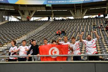 La Plata, Argentina.- En las fotos tomadas el 22 de mayo del 2023, durante el partido entre Inglaterra y Túnez en el Mundial Sub20 de Argentina en el estadio Único Diego Maradona de La Plata. Con un cabezazo del artillero Dane Scarlett, el campeón europeo Inglaterra venció 1-0 a Túnez. Inglaterra, busca su segundo torneo mundial tras el obtenido en 2017, por lo que lidera con tres puntos el Grupo E.