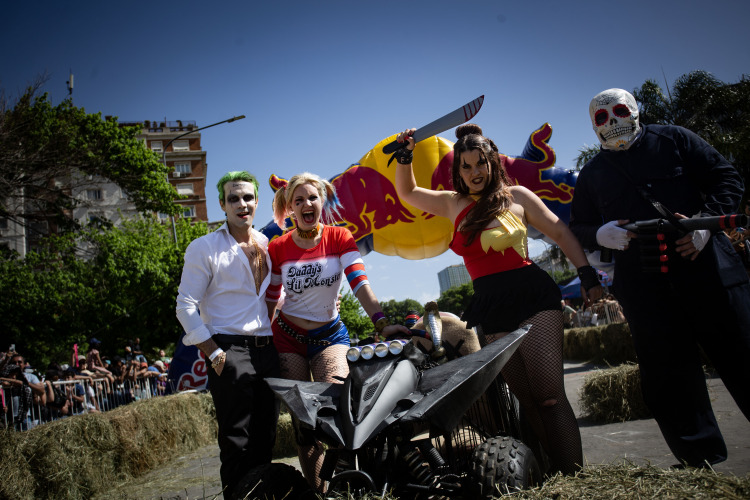 Buenos Aires, Argentina.- En las fotos tomadas el 12 de noviembre del 2023, las personas participan de la Carrera de Autos Locos en Buenos Aires. En evento, contó con 30 vehículos que compitieron en la bajada de Carlos Pellegrini y avenida del Libertador, en el porteño barrio de Retiro, ante más de 30.000 espectadores fanáticos del automovilismo.