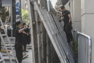 Buenos Aires.- En la foto del 5 de enero de 2024, la organización social Somos Barrios de Pie, que conduce Daniel Menéndez, realizará hoy una movilización frente al Hotel Libertador, donde se hospeda el presidente Javier Milei, para protestar por "la falta de alimentos en los comedores comunitarios". Efectivos de la Policía Federal vallaron el hotel.