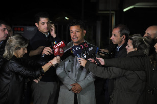 Buenos Aires, Argentina.- En las fotos tomadas el 15 de febrero del 2024, el líder del Polo Obrero (PO), Eduardo Belliboni (2do izquierda), denunció al presidente Javier Milei por los presuntos delitos de intimidación pública, incitación a la violencia colectiva y amenazas, a raíz de un posteo del primer mandatario en redes sociales que aludió a su persona como "detectado" junto a la frase "casta a la vista".