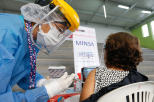 Lima, Perú.- En las fotos tomadas el 26 de marzo del 2021, muestra un centro de vacunación contra el coronavirus. La cifra de casos de coronavirus en Perú superó el millón y medio, y la de muertes alcanzó 50.831 desde que irrumpió la pandemia hace 12 meses, informó el Ministerio de Salud. Mientras, la vacunación contra el Covid-19 avanza a paso lento desde que empezó el 9 de febrero, debido a la falta de dosis cuya adquisición negocia el Gobierno.