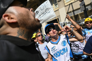 Buenos Aires, Argentina.- En las fotos tomadas el 29 de febrero del 2024, el personal agrupado en la seccional porteña de la Unión Obrera de la Construcción (Uocra) se movilizó hacia la Secretaría de Trabajo en rechazo de 300 despidos en la empresa Dycasa y de "las suspensiones y la pérdida de miles de puestos de empleo como consecuencia de la paralización de las obras públicas", informó el gremio.