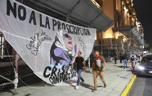 Buenos Aires, Argentina.- En las fotos tomadas el 29 de marzo del 2023, el padre Paco Olivera, dio una misa multitudinaria frente al palacio de Tribunales para denunciar la "proscripción" de la vicepresidenta, Cristina Fernández. Olivera, de 58 años, junto con activistas por los derechos humanos y veteranos de la guerra de Malvinas llevan cinco días en huelga de hambre como una forma de cargar contra el máximo tribunal del país.