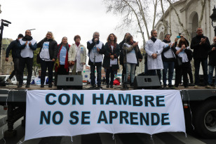 Buenos Aires, Argentina.- In the photo, today September 11, 2019, on Teacher's Day in Argentina, teachers mobilized in different parts of the country called by the Confederation of Education Workers (Ctera). They loaded posters in solidarity with Colombian teachers who a few weeks ago denounced harassment, threats and murders against social leaders, including teachers. With a community breakfast and educational games for the whole family, teachers celebrated their day with a particular request. "With hunger you cannot teach or learn," was the slogan of the central act for the Day of the Teacher and the Teacher that was held in front of the Cabildo. The day was aimed at denouncing the situation in the classroom. "Hunger does not wait," repeated the teachers throughout the morning.